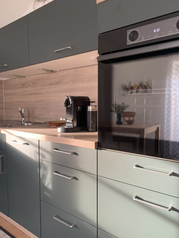 “löffelfertig” eingerichtet: inkl. Töpfe, Pfannen, Geschirr und sonst. Küchenutensilien